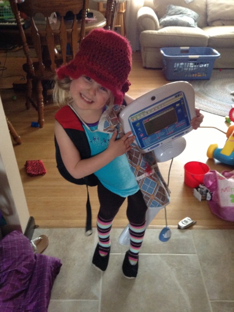 I came upstairs to make some lunch today and saw this…obviously the first thought to enter my mind was “grab a camera!!”. I asked her what she was up to and she said she was pretending to go to the science fair. I think it’s high time I took her to the science museum 🙂